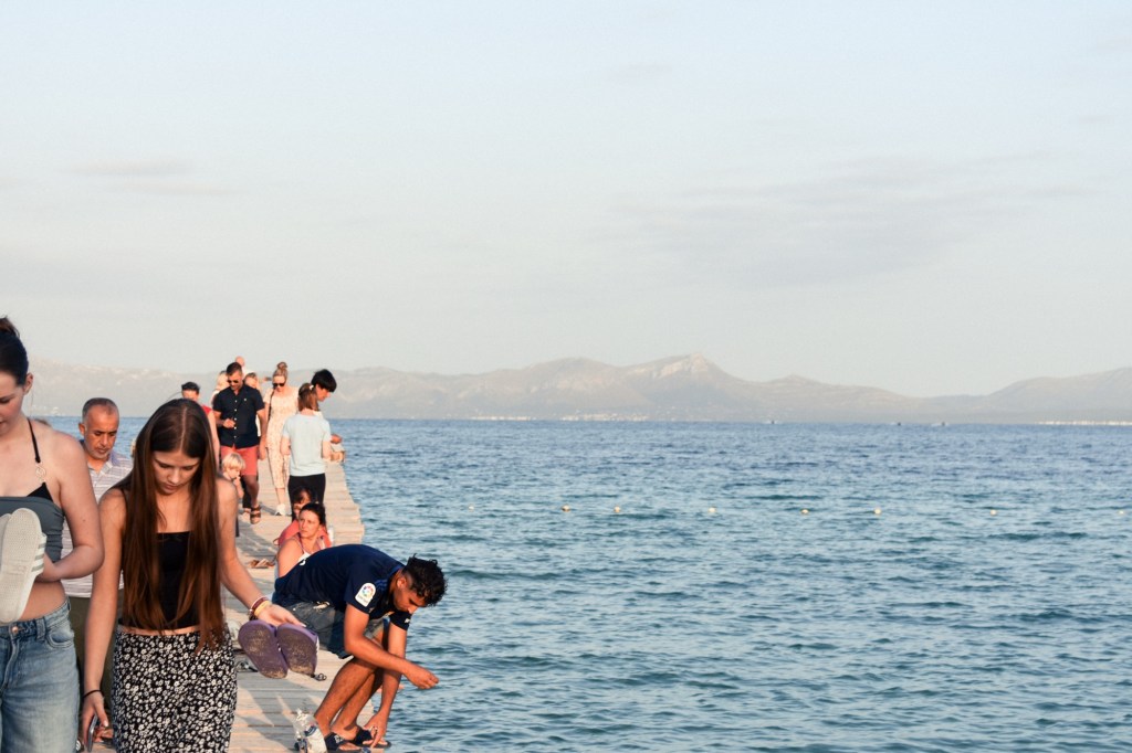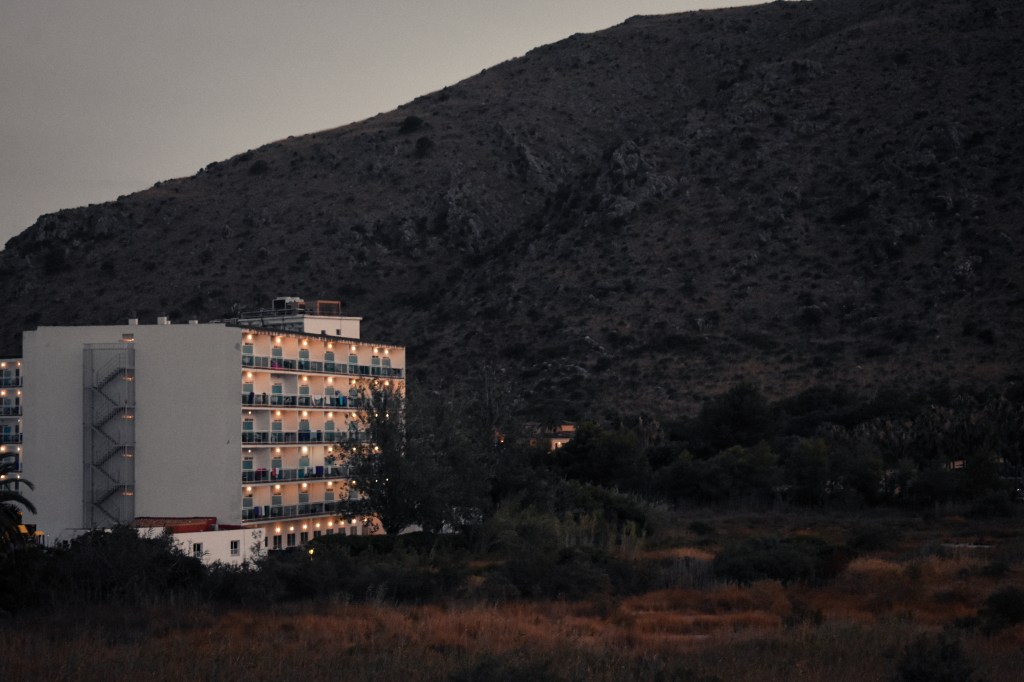 We were staying in a hotel just south of Alcúdia, where life moved a little slower. Like most parts of the island, Alcúdia is split between residents and rentals. I read that the tourist economy has pushed local housing prices up while hollowing out winter populations. It feels almost like a stage set sometimes. The streets surrounding us were so quiet, almost eerily so. Minimal signs of life, save for some locals watching games of football over beers at the outdoor bars. (Observer, 2023)