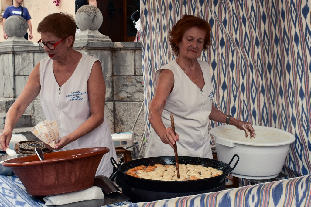 I also tried buñuelos for the first time and, suffice to say, had my mind blown. I’ve been craving them ever since. They’re the softest pockets of dough, lightly crisped by the fryer. I read that there are several iterations of the buñuelo, eaten over almost every continent. It has a relative in the beignet, if you’re familiar. In the Balearic Islands, they’re often made with potato or sweet potato, sometimes filled with Mahón cheese or dried figs, which I wish I tried. Looking at the photo I took of those two women flipping them fresh, I can smell the sweetness in the air – what I wouldn’t do for one now.